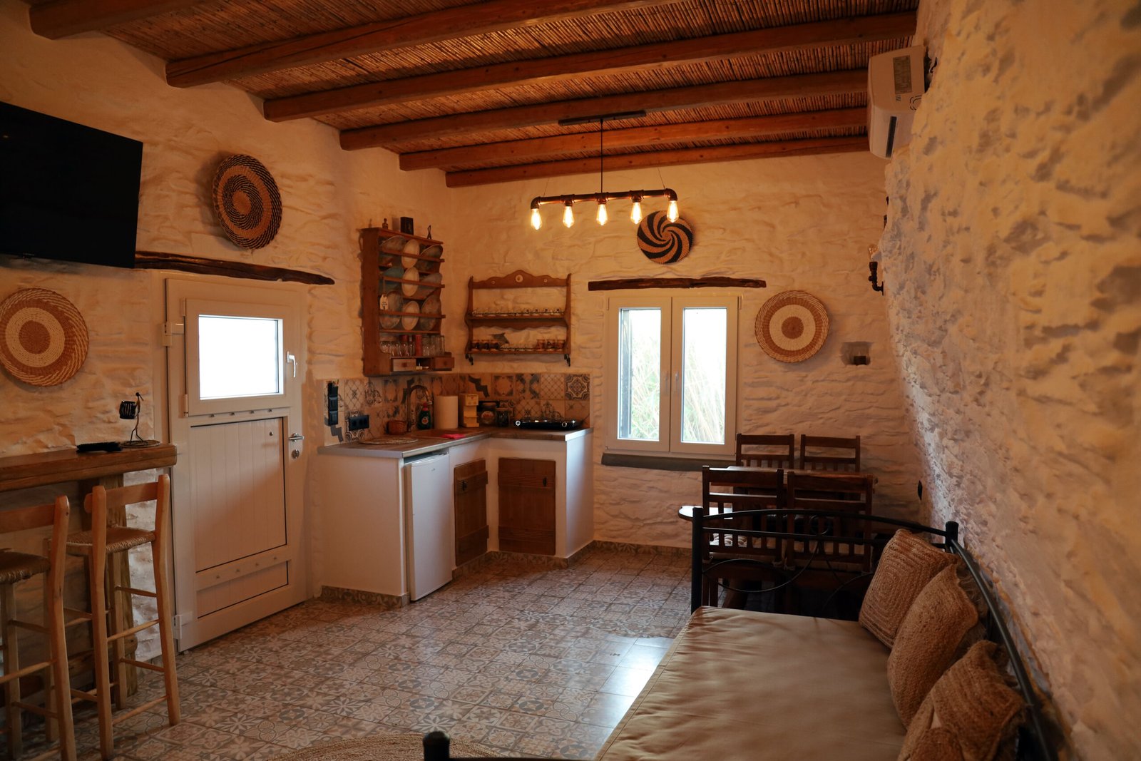 Tucked away in the peaceful village of Loutra on the island of Kythnos, this beautifully crafted 40 sq.m. apartment is a hidden gem just a few steps from the Aegean Sea. Designed with love and care by a local host deeply connected to the island, the space radiates authenticity, simplicity, and the laid-back charm of the Cyclades.