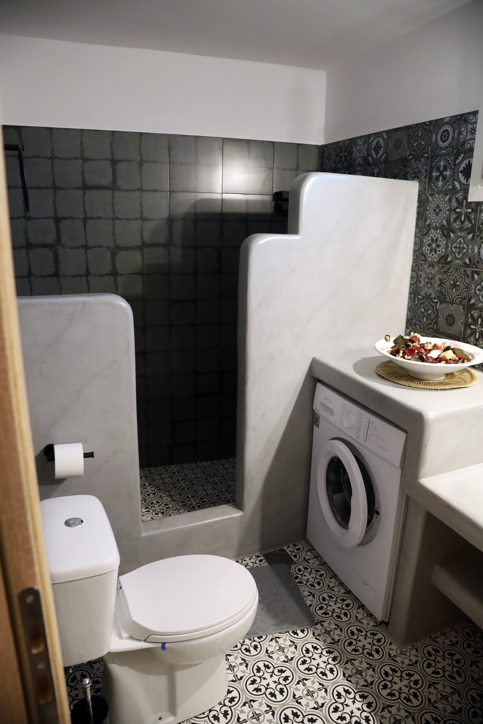 Inside, you’ll find everything you need for a relaxed and effortless stay: a fully equipped kitchen with all the essentials for home-cooked meals, a dining table for sharing food and conversation, a modern bathroom, air conditioning, Wi-Fi, a washing machine, a flat-screen TV, and even a private parking space—perfect if you’re arriving with your own car.